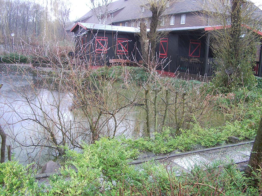 Dieser Teich auf dem Alpenvereinsgelände wird weiterhin als Feuerlöschteich genutzt - wohl einziger noch genutzter Weltkriegs-Löschteich auf Privatgrund in Norddeutschland.