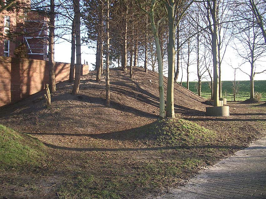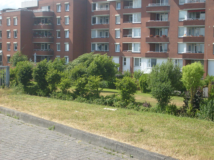 Unter diesem kleinen Berg an der Mietergarage des heutigen Wohnblockes einige Meter westlich des Bunkerstandortes ist noch heute eine Vielzahl von Trümmerstücken vorhanden...