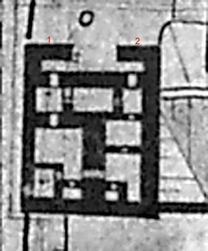 Riss des Bunkers mit beiden Splitterschutzvorbauten...
