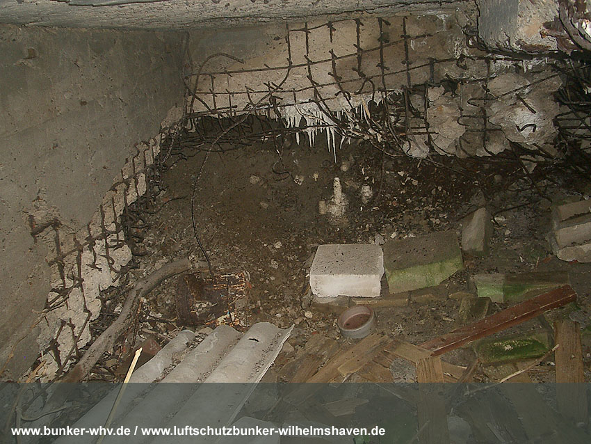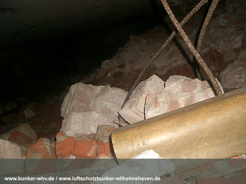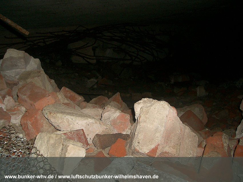 Das gesprengte, verschüttete Innere des Bunkers: