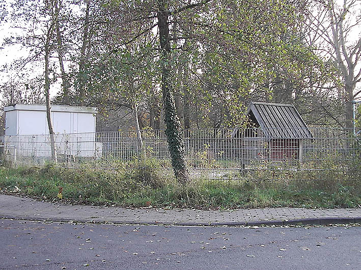Am Westrand des ehemaligen Fort Schaar (ein Großteil des Geländes ist heute mit Wohnhäusern bebaut), wo am Anfang des Zweiten Weltkrieges auch die Luftverteidigung Wilhelmshavens koordiniert wurde, befindet sich am dortigen Graben außerhalb des ehemaligen Fortbereiches diese historische Stahlklappe. Sie ist versiegelt. Im Inneren kann man durch eine kleine Öffnung hindurch leider nur schlecht etwas erkennen. Kurios ist die unmittelbare Nähe zum Wassergraben. Eigentlich müsste jeder tiefere historische Innenraum unter der Klappe längst unter Wasser stehen. Daneben befinden sich diverse Betonquader, einige mit Metallaufnahmen versehen. Was war das? Auf 1945er Luftbildern ist genau an der Stelle lediglich ein undefinierbarer kleiner Punkt zu erkennen. Hatten diese Strukturen etwas mit Luftschutz zu tun?