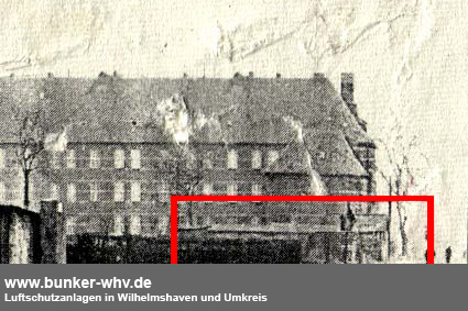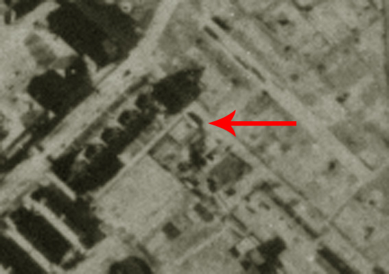 Es dürfte sich hierbei wohl um einen Deckungsgraben oder Kleinbunker gehandelt haben. Wenn es ein betonierter Deckungsgraben war, dann eventuell in L-Form. Interessant ist aber auch die "helle schmale Linie" genau südlich der Gebäude, welche an den Objektstandort mündet. War dies eventuell eine zugehörige lange "Luftschutzröhre"? Insgesamt sind bezüglich dieser Anlage noch einige Fragen offen. Gut ist aber zu erkennen, dass das massive Konstrukt betoniert war. Zu sehen u.a. auch Absinterungen des Betons im Bereich der "Naht" der Abschlussdecke.