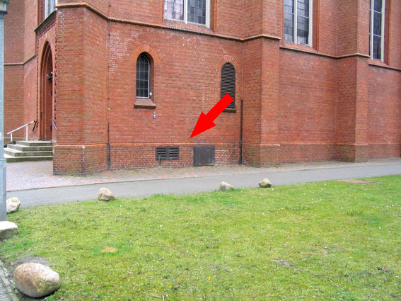 Am rechten Bildrand ist mittig der Notausstieg im Rasen zu erkennen.