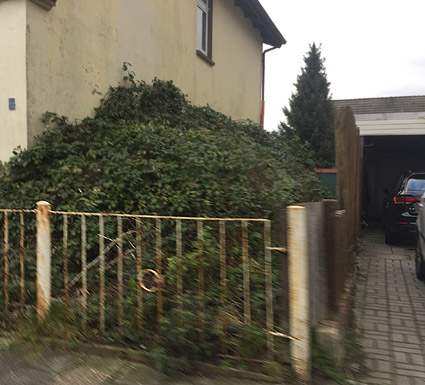 Dieser kleine Erdbunker wurde definitiv privat angelegt und kann nicht für mehr als eine Familie Platz geboten haben. Der röhrenartige Schutzraum mit Hauptzugang von außen besitzt zudem einen Eingang vom Keller des anliegenden Wohnhauses aus. Ungewöhnlich ist die direkte Nähe am Wohnhaus, welches bei einem Einsturz den gesamten Schutzraum begraben hätte. Es handelt sich hier nicht um einen Splitterschutzeingang eines LS-Kellers, sondern um eine eigenständige kleine externe LS-Anlage.