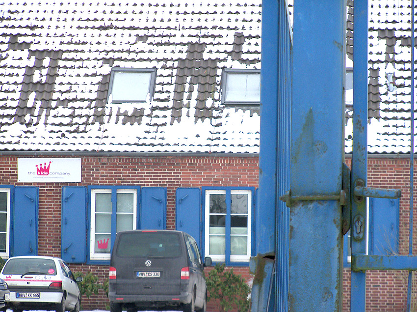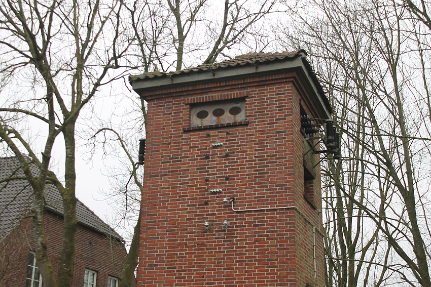 Vorm Turm befindet sich ein weiteres Gebäude, welches als Stromverteiler dient(e).