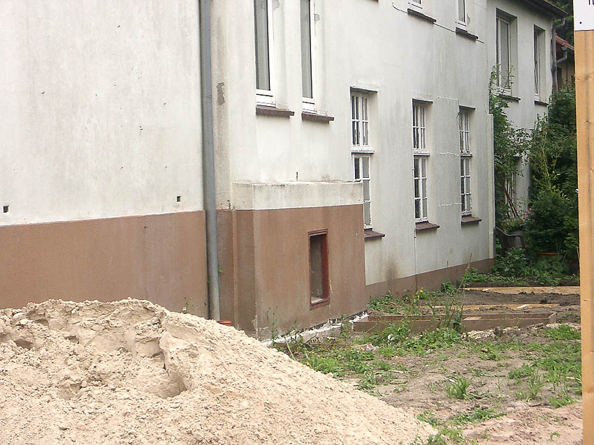Die Renovierungsarbeiten sind abgeschlossen. Jedoch ist die Verstärkung des Ausstieges weiterhin erkennbar. Auch die Öffnung ist, nun mit einem Fenster versehen (auf dem Bild hinter der Balkonhalterung), erhalten geblieben.