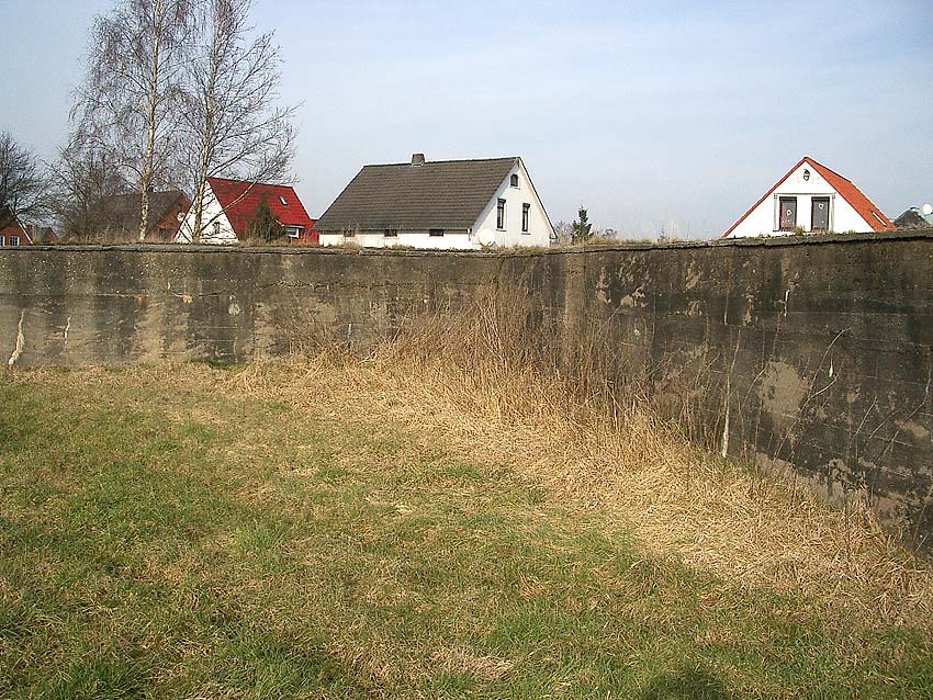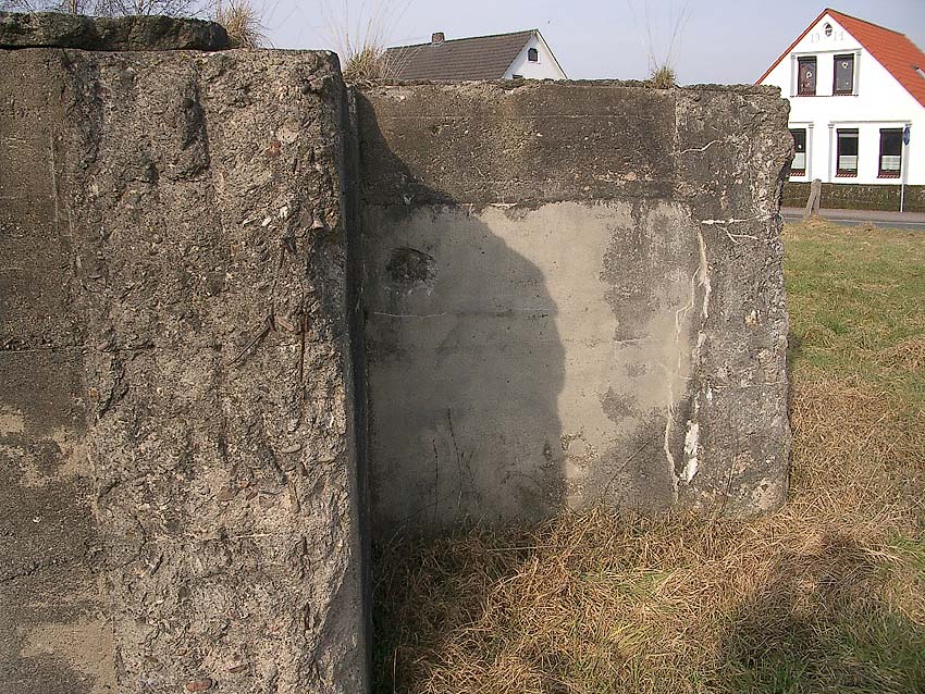 Dieser Deckungsgraben kann auch als "Zickzackbunker" bezeichnet werden, eine kleinere Variante der betonierten Deckungsgrabenbauart, wie sie in unserer Region in Emden des öfteren errichtet wurde. Der Graben war zumindest äußerlich annähernd bauartgleich zum Deckungsgraben in Sande an der Hauptstraße, jedoch wurde er im Aufbau genau spiegelverkehrt realisiert.