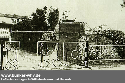 Das Eingangsbauwerk war etwas kürzer ausgeführt worden, als beispielsweise in Schortens (Heidmühle). Dies hing damit zusammen, dass diese Anlage weiter über Erdgleiche angelegt wurde und der Treppenabgang deshalb nicht derartig tief / lang ausgeführt werden musste, wie in Schortens (Heidmühle).