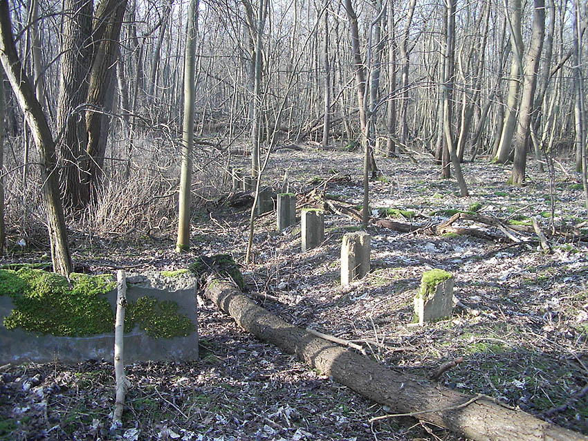 Sicht auf die ehemalige Siemensstraße. In Blickrichtung rechts davon liegt der Rest des Munitionsbunkers...