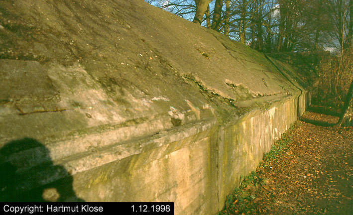 Die Furchen im Dach sollten zur Aufnahme von Dachpfannen aus Tarnungsgründen und für die ästhetische Erscheinung dienen. Diese Maßnahme scheint hier in Neuende jedoch nicht durchgeführt worden zu sein.