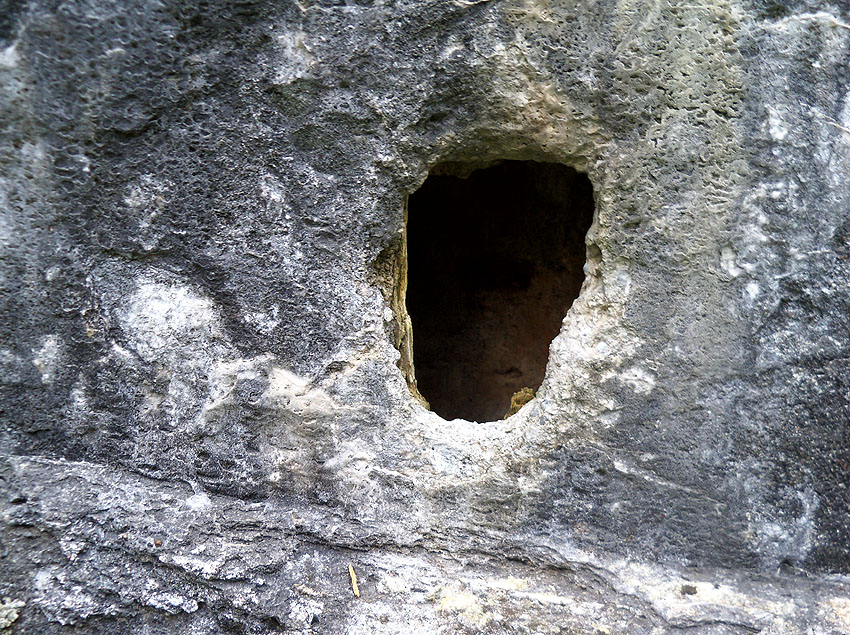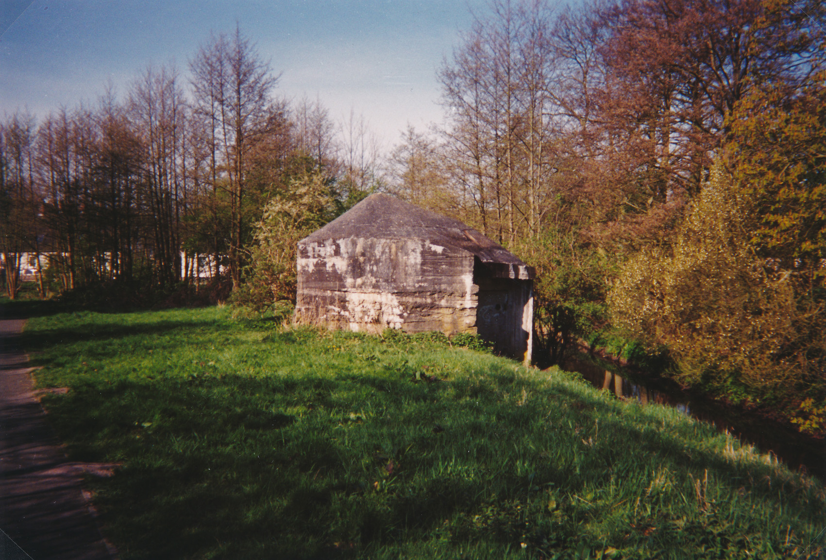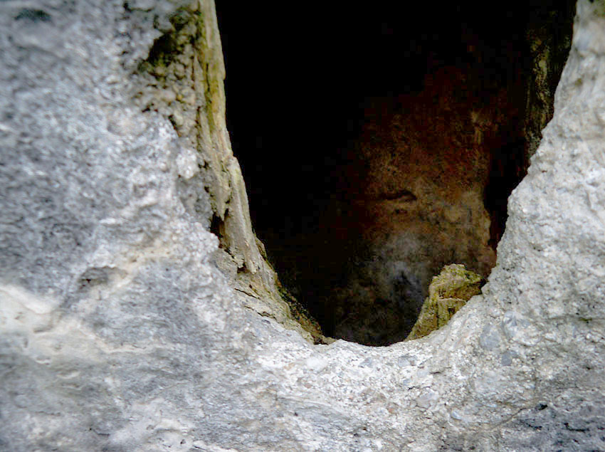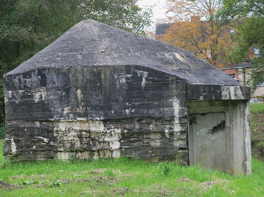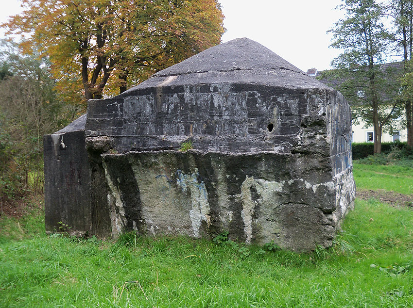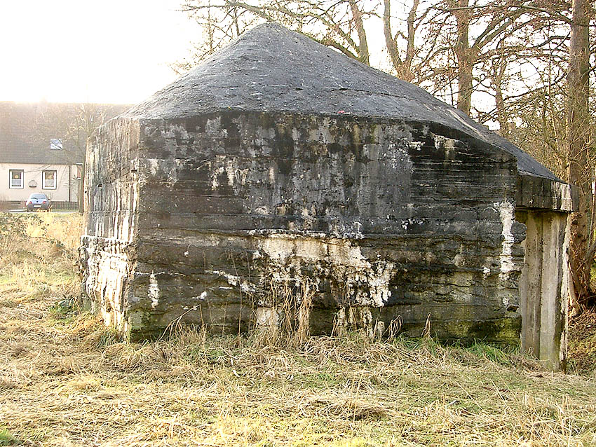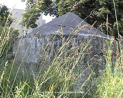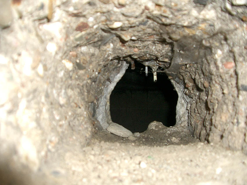 Hier war ein mutmaßlich verbunkerter Anbau in Röhrenbauform angesetzt. Links zu sehen ein runde Aussparung am Bunker in vertikaler Richtung. Dort könnte ursprünglich eine Art Rohr positioniert gewesen sein...
