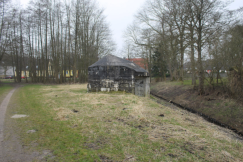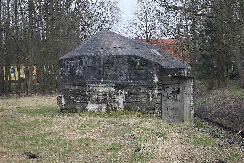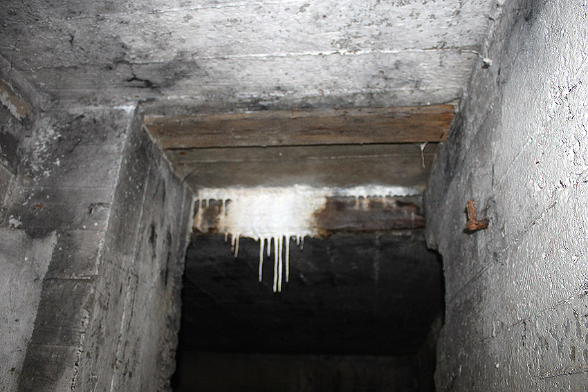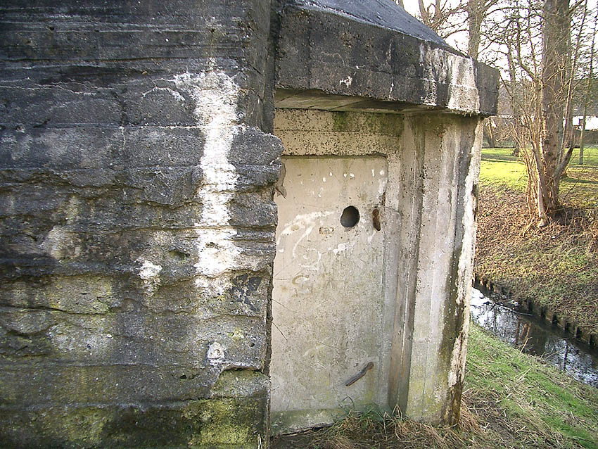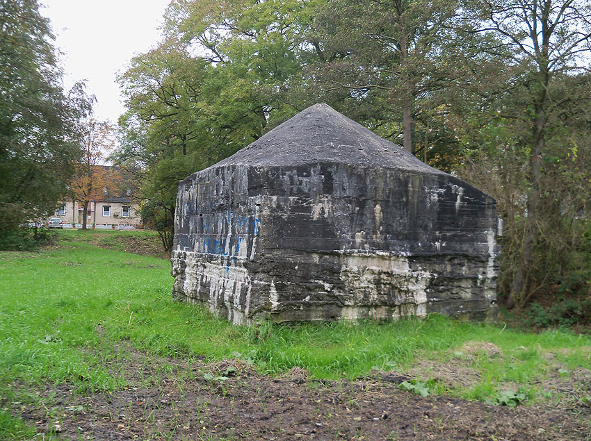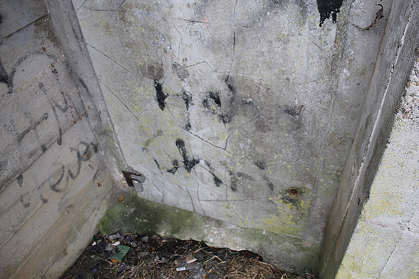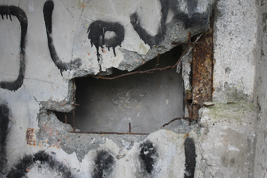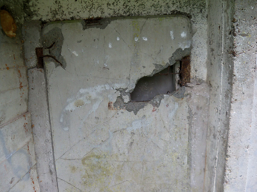 Die Öffnung an der Nordseite des Bunkers schien eine Art Sichtscharte gewesen zu sein. Sie wurde in den Jahren im Innenbereich wahrscheinlich weiter aufgebrochen und befindet sich im Gasschleusenbereich...