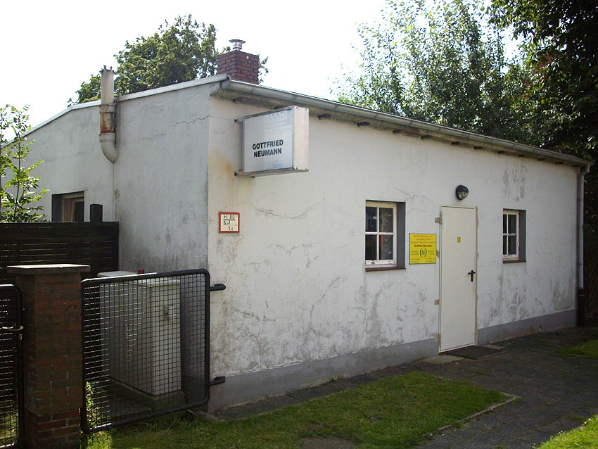 Unter diesem unscheinbaren Gebäude befindet sich die metertiefe, kreisrunde Pumpwerksverbunkerung.
