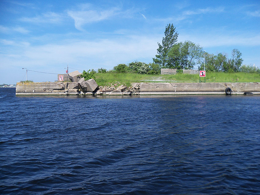 Bei dem mutmaßlichen Beobachtungsstand könnte es sich auch lediglich um ein herausgesprengtes Betonsegment des Hafentores handeln, dessen Öffnung eventuell zur Aufnahme von Leinen von Schiffen vorgesehen war...