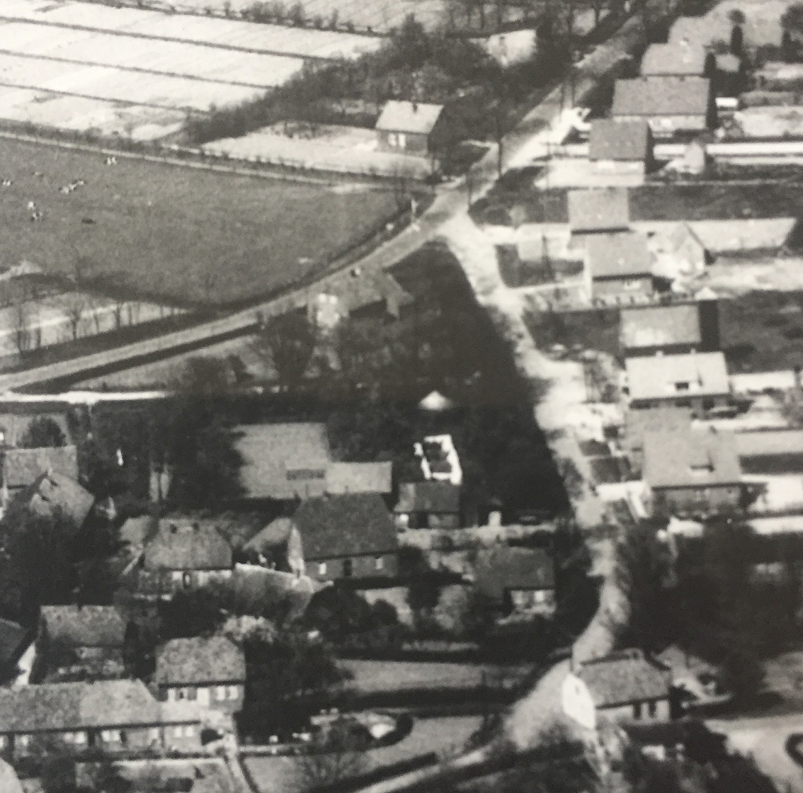 Bildmitte: Hier dürfte eine Spitzkuppel des Bunkers erkennbar sein. Dann wäre der Bunker wohl bauartähnlich zu jenem an der Pastorei in Fedderwarden...