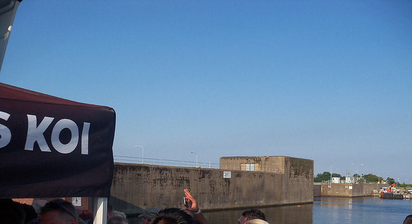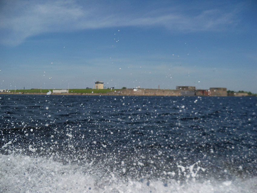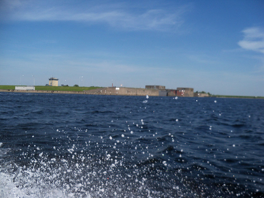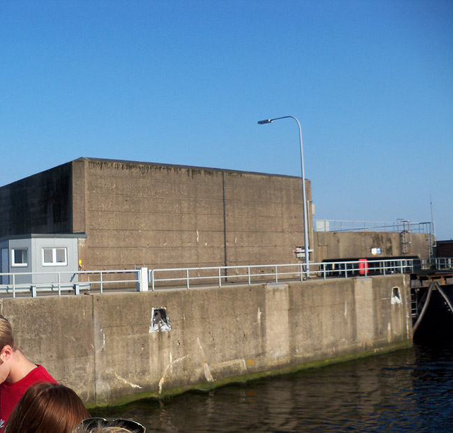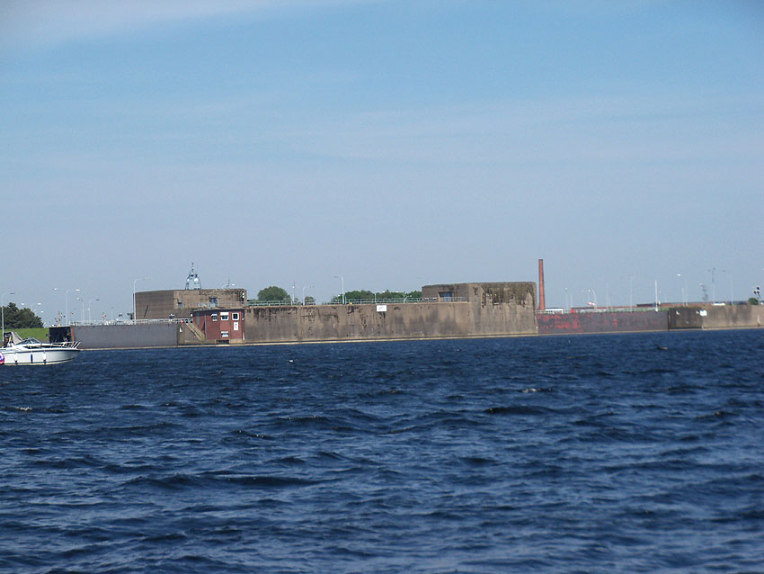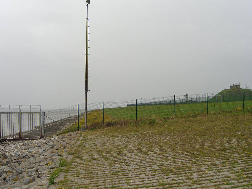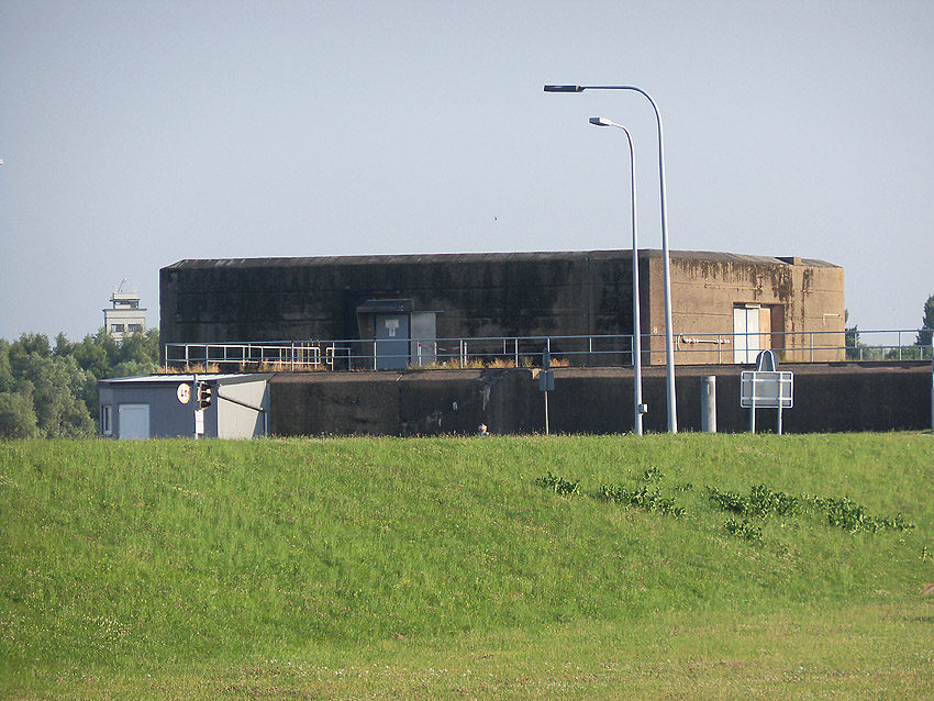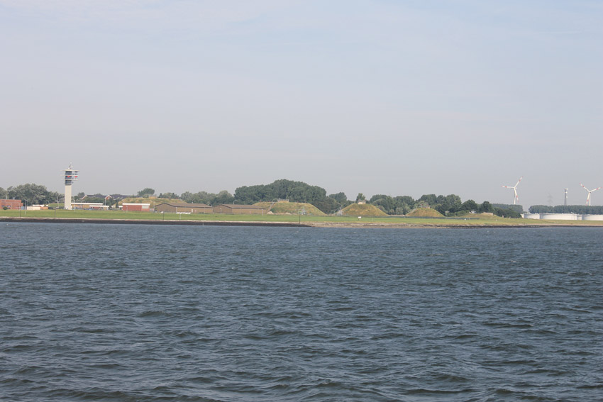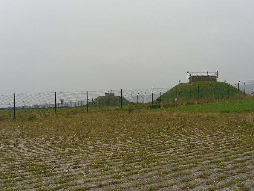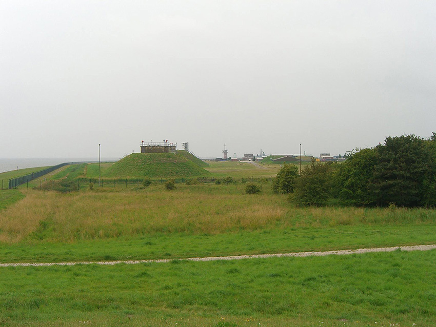 Moderne Treibstoff- und Ölbunker im Bereich des Stützpunktes der 4. Einfahrt (ein so genanntes "Onbase"-Tanklager der NATO). Unweit nördlich davon (hier ganz rechts u.a. im folgenden Bild) der Rüstringer Berg, ehemals schwere Flakstellung Raederschleuse Nord:
