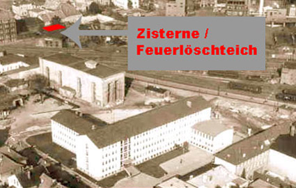 Verbunkerte Zisterne und betoniertes Feuerlöschteichbecken / Feuerlöschteich Bahnhofsbereich Nord West / Nähe alter Lokschuppen / Stadtkern Erhalten