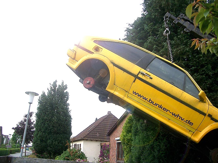 Das alte Igel-Mobil, welches zweieinhalb Jahre sein Dasein im Carport fristete, hat heute seine letzte Reise angetreten. Letzter Standort ist nun auf einem Autoverwertungsplatz direkt neben der Luftschutzturmruine Munitionsdepot 1.