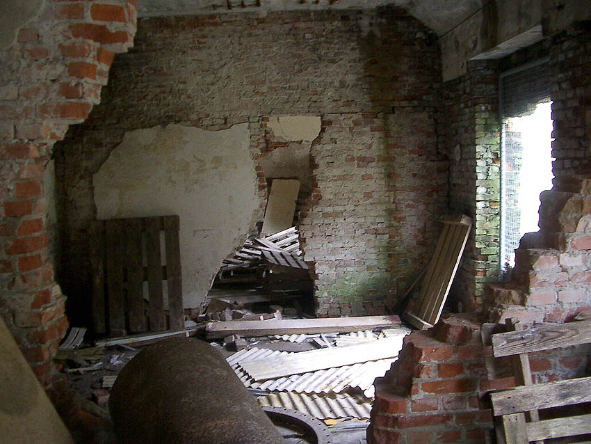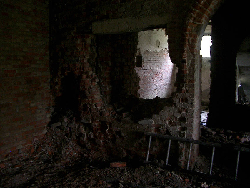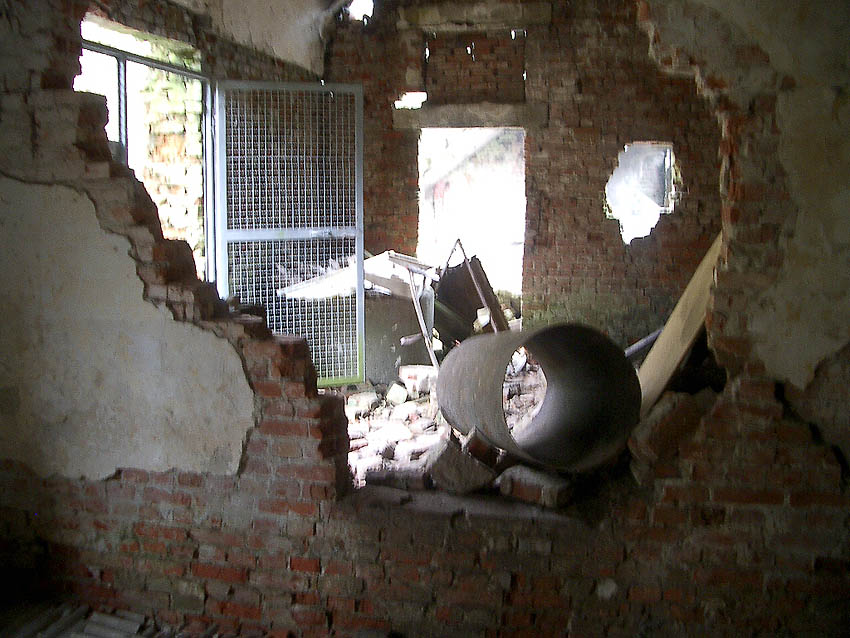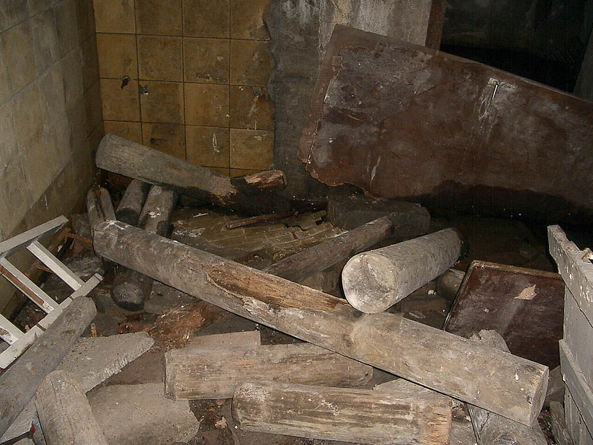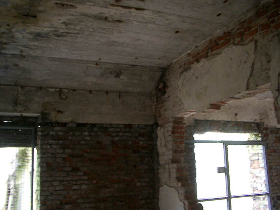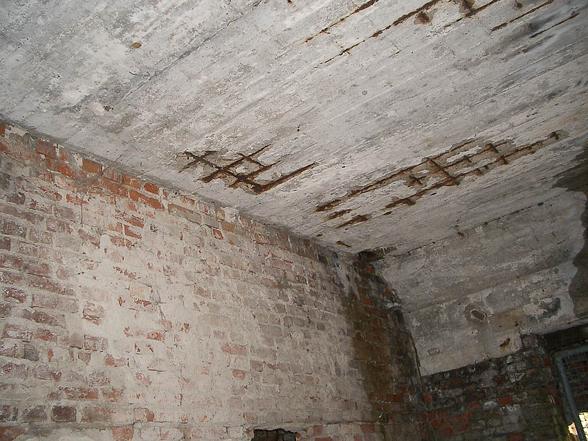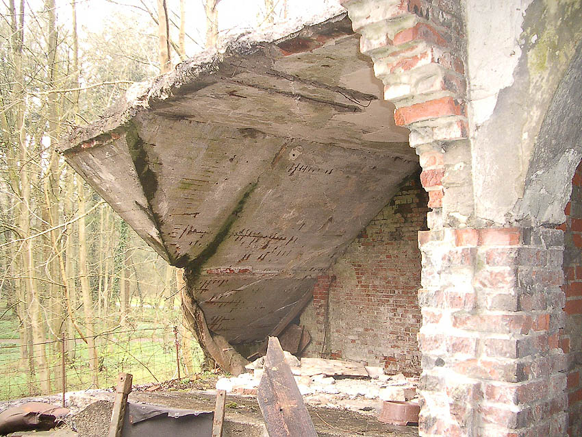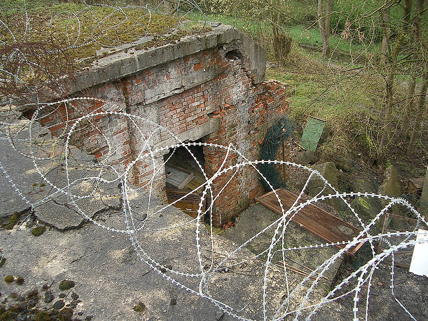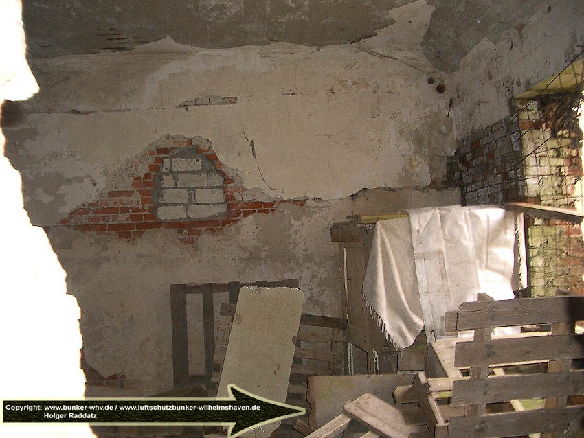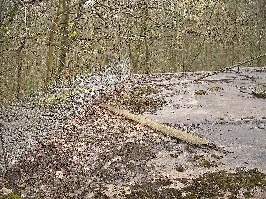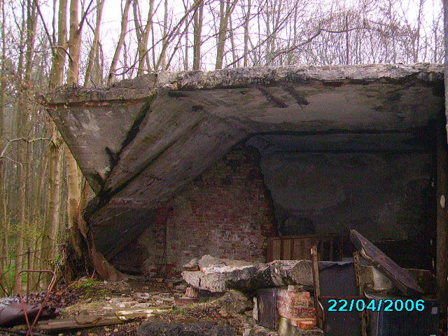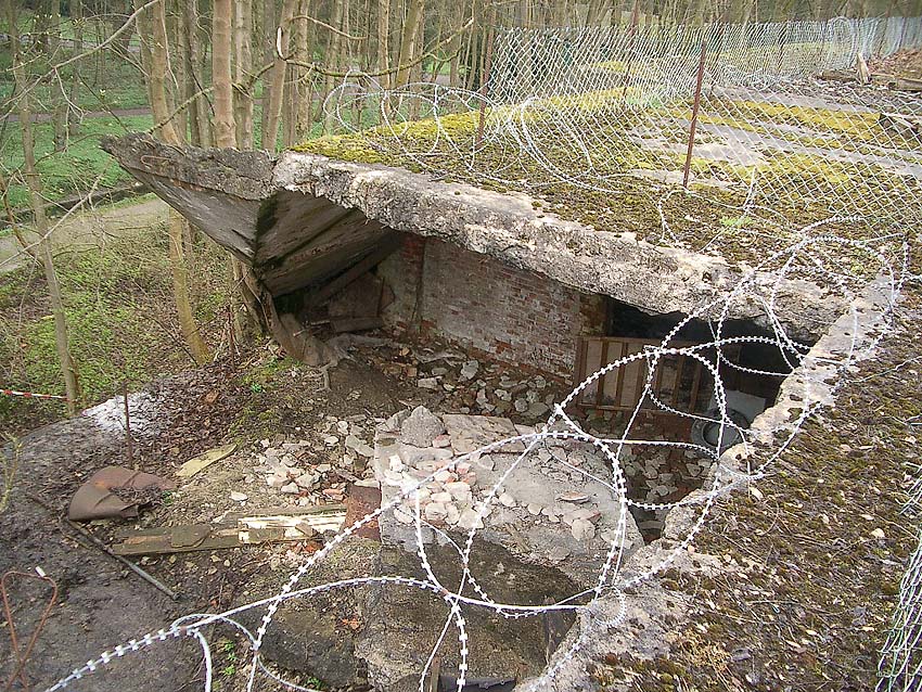 Der eigentliche Bunker im Tiefgeschoss stand zum Zeitpunkt der Begehung unter Wasser. Die Begehung des Bunkers holen wir deshalb im Sommer (die Begehung fand schließlich doch erst am 05.10.06 statt, Anmerkung des Verfassers) nach und zeigen hier heute eine Bilderimpression des durch Sprengung teilbeschädigten Obergeschosses der Anlage. Der zerstörte Bereich ist der Standort des ehemaligen Anbaues mit Beobachterturm, auf dem auch ein leichtes Flakgeschütz stand.