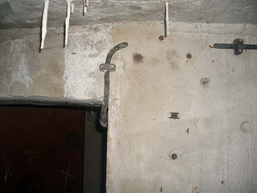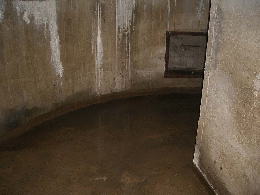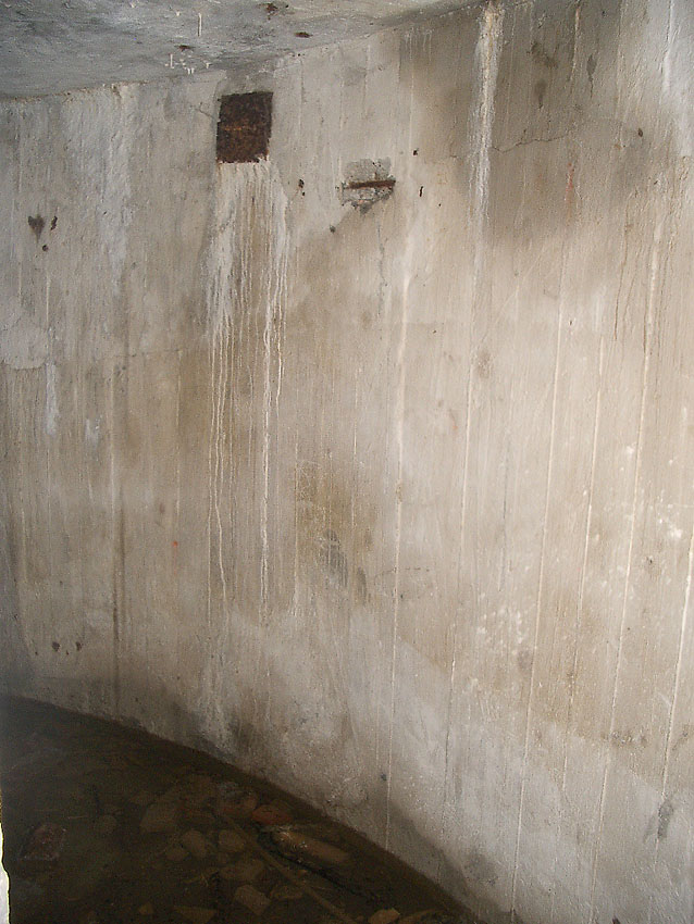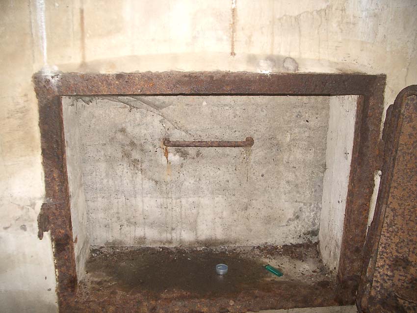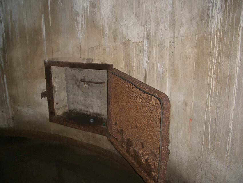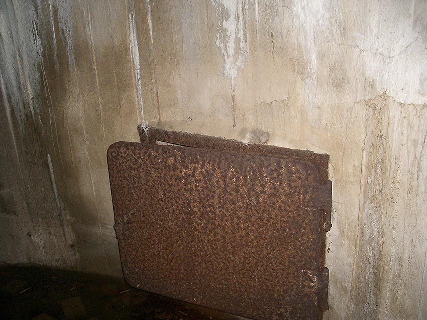 Der Hauptraum mit Lüftungsschacht / Schutzklappe, sowie der großen Schutzklappe vor dem Notausstiegsblock. Sie sorgte für gassichere Abdichtung des Innenraumes (Gas hätte ansonsten in der Fuge zwischen Block und Bunkerwand hindurchtreten können)...