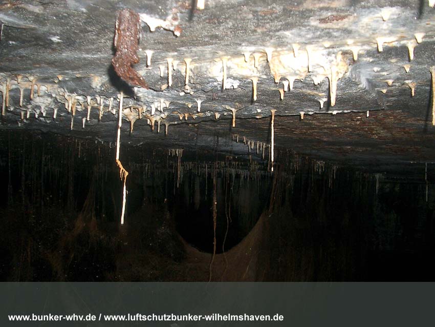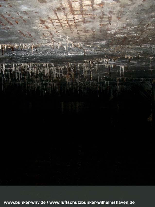 Warum wurde gerade hier auf der Wiesbadenbrücke ein Tiefbunker errichtet? Nicht nur, dass Wilhelmshaven ohnehin einen hohen Grundwasserspiegel hat. Gerade hier drückt das Wasser des Hafens von zwei, ja sogar wohl drei bzw. vier Seiten besonders an die Bunkerwände. Der Bau kann nur erklärbar sein durch zwei Punkte. 1. Tarnung, da im Krieg ohnehin nur spärliche oberirdische Bebauung auf der Wiesbadenbrücke existierte. 2. Freies Schussfeld für mittlere Flak, die nach Hinweisen zu Zeit des Bunkerbaues hier stationiert war, später dann an einen anderen Standort verbracht wurde.