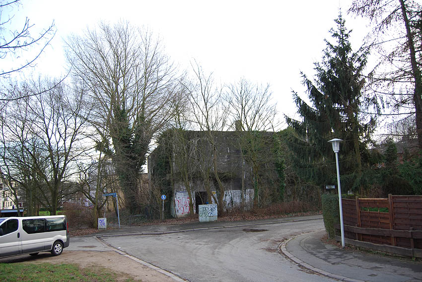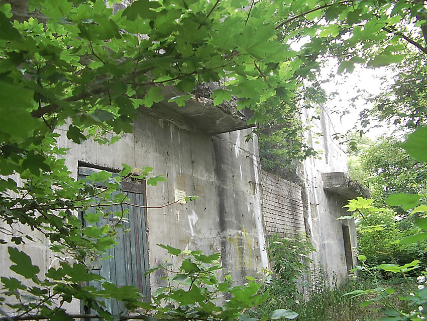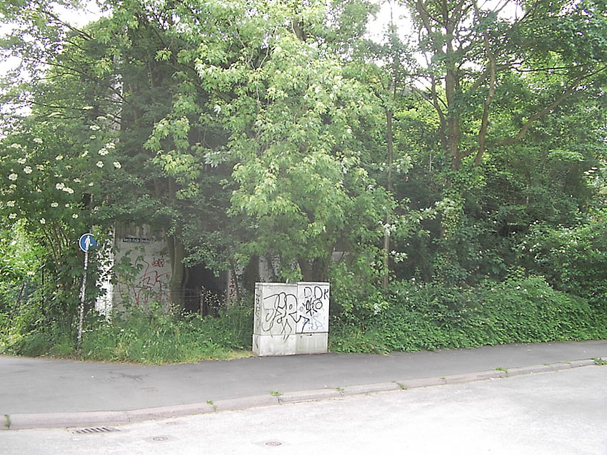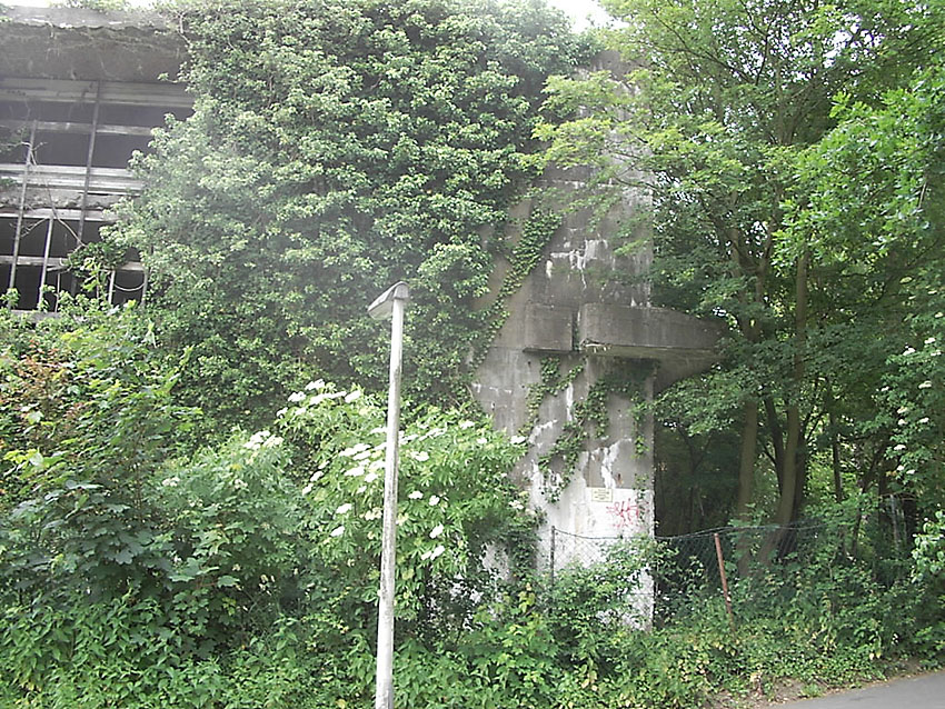 ENTFESTIGT / VORHANDEN Bunker wird seit Frühjahr 2016 umgebaut und überbaut Nachtrag Juli 2020: Die Umbauarbeiten sind bis Sommer 2020 (in äußerlich gering erkennbarem Maße) weitergeführt worden |