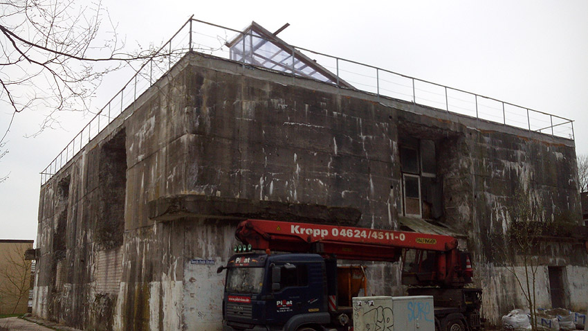 Seit Frühjahr 2016 wird der Bunker (Schritt für Schritt) umgebaut und überbaut. Hier ist der Beginn der Arbeiten zu sehen: