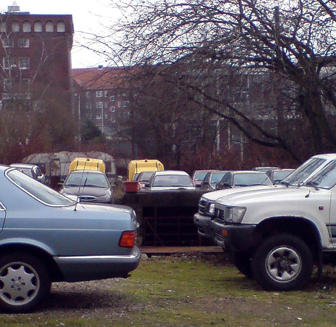Im Hintergrund ist auf dem oberen Bild der LS-Turm Gablenzstraße erkennbar, vorne auf dem Autostellplatz mittig ist ein erhaltenes Eingangsbauwerk des "Gablenz-Tiefbunkers" zu sehen. Zu diesem Bunkerobjekt: