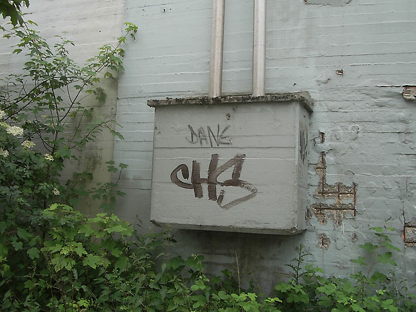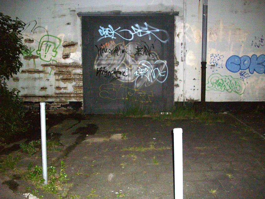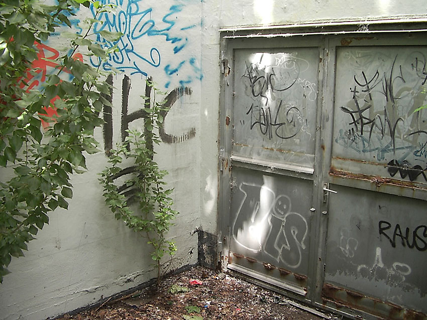 Ein weiterer Eingang befindet sich ebenfalls an der Straße, dieser ist schon direkt an der äußeren Kante vermauert worden: