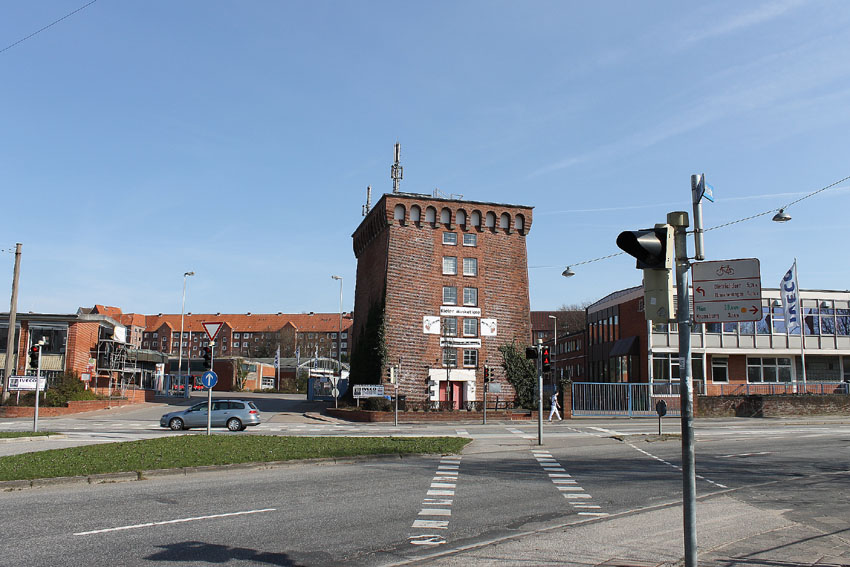Hochbunker hinter der Holstenbrücke ("Reichshallenbunker" / "Holsten-Bunker"), nach dem Krieg entfestigt: