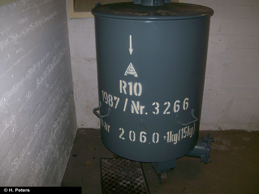 Die Deckenstärke des Bauwerkes beträgt ca. 1 m. Es steht ca. 40 cm unter Wasser. Auf dem Stellplatz selbst befinden sich einige große Stahlplatten, sowie Erhöhungen. Lüftungsbauwerke? Des weiteren befinden sich dort Betonplatten mit kleinen quadratischen Gläsern (!). Einige Gläser sind zerborsten, darunter ist jeweils ein nicht trockener Hohlraum erkennbar, ca. 1,2 - 1,3 m tief / bis zum Wasser, welches dort steht.