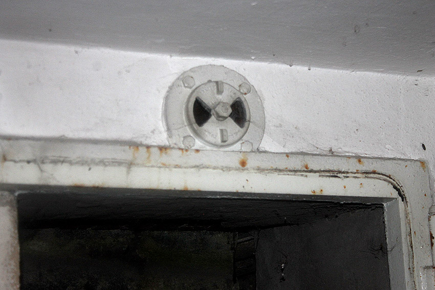 Blick in die Gasschleuse zur inneren Tür. Dahinter befindet sich der zweite Raum...
