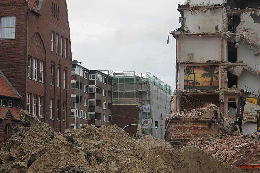 Unsere Meldung vom 22. März 2016: Abgerissen wird seit heute das alte Gebäude vom ehemaligen Bauunternehmen Hermann Möller an der Virchowstraße Ecke Rheinstraße (Rheinstraße 75 / Virchowstraße 8). Zuvor wurde bereits das ehemalige C&A-Kaufhaus planiert. Hier soll ein neues Verkaufszentrum entstehen: "Wilhelm's Outlet". Das Bauunternehmen Möller koordinierte Bunkerbauvorhaben und entwarf auch viele der Bunker in Wilhelmshaven im WK 2. Die Aktivitäten reichten hier bis in diverse andere norddeutsche Städte. Unter anderem war man auch beim U-Bootbunkerbau beteiligt. Das historische Hermann-Möller-Tor von 1934 wurde bereits gesichert und wird im Neubau ausgestellt, ebenso der historische Mauerstein mit Gründungsdatum 1934. Er wird in die neue Fassade eingearbeitet. Mit dem Gebäude verschwindet auch der Luftschutzkeller im Inneren. Mehr Bilder auf unserer Facebookseite: Luftschutzbunker in Wilhelmshaven