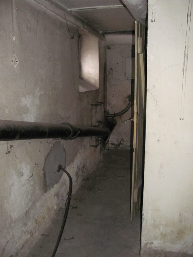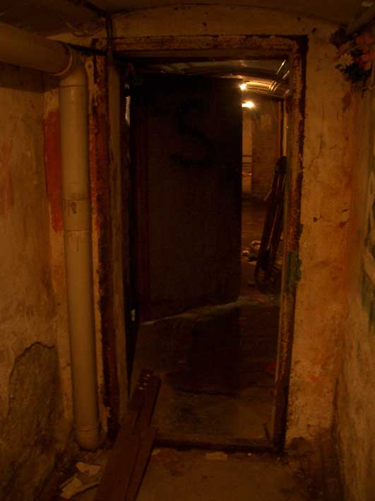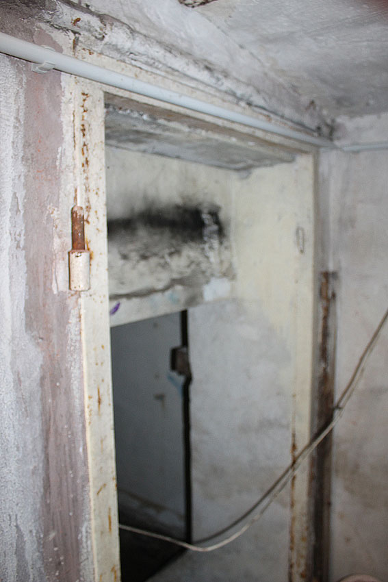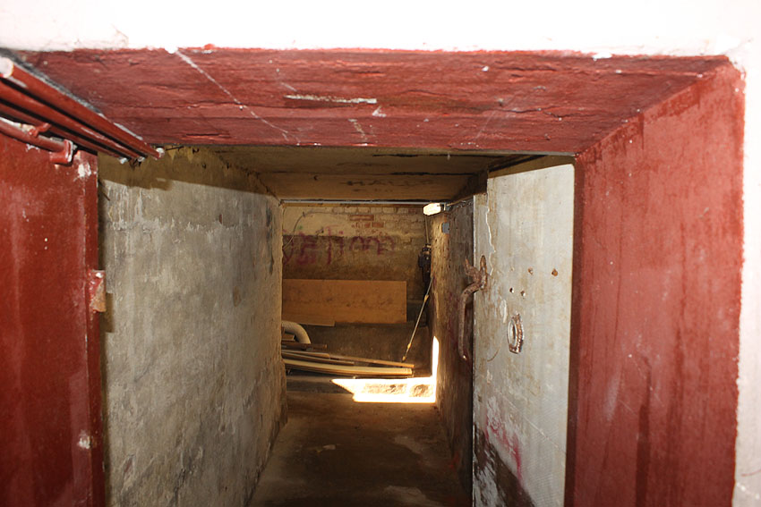 Hier war die Nordgasschleuse. Nachträglich wurde sie aufgebrochen (Öffnung links) - um einen größeren Raum für die ansässige Firma zu schaffen: