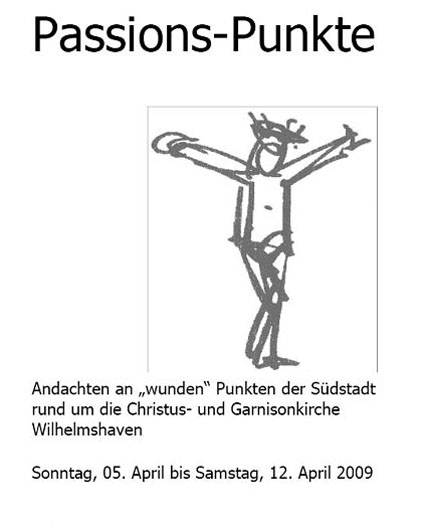 Nachtrag: Am 11. April 2009 fand die Veranstaltung wie bekanntgegeben von 18 h bis 18.25 h vorm T 750 Emsstraße 2 in Wilhelmshaven statt. Bei bestem Wetter war der Passions-Punkt mit circa 120 Personen gut besucht.