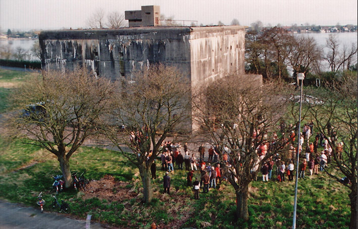 Der Bunker hinter uns mit Baujahr 1943 ist, obwohl er schon einige Wochen nach Vollendung nutzbar war, erst Anfang der 1970er Jahre komplett ausgehärtet, 30 Jahre nach dessen Fertigstellung. Es kann noch bis zu 200 Jahre dauern, bis der Beton von selbst anfängt, langsam zu bröckeln. Deshalb werden auch Bunker wie dieser noch in hunderten Jahren vorhanden sein.