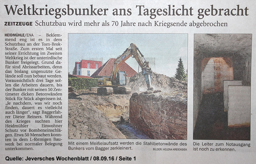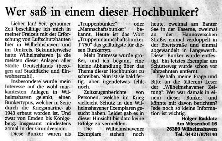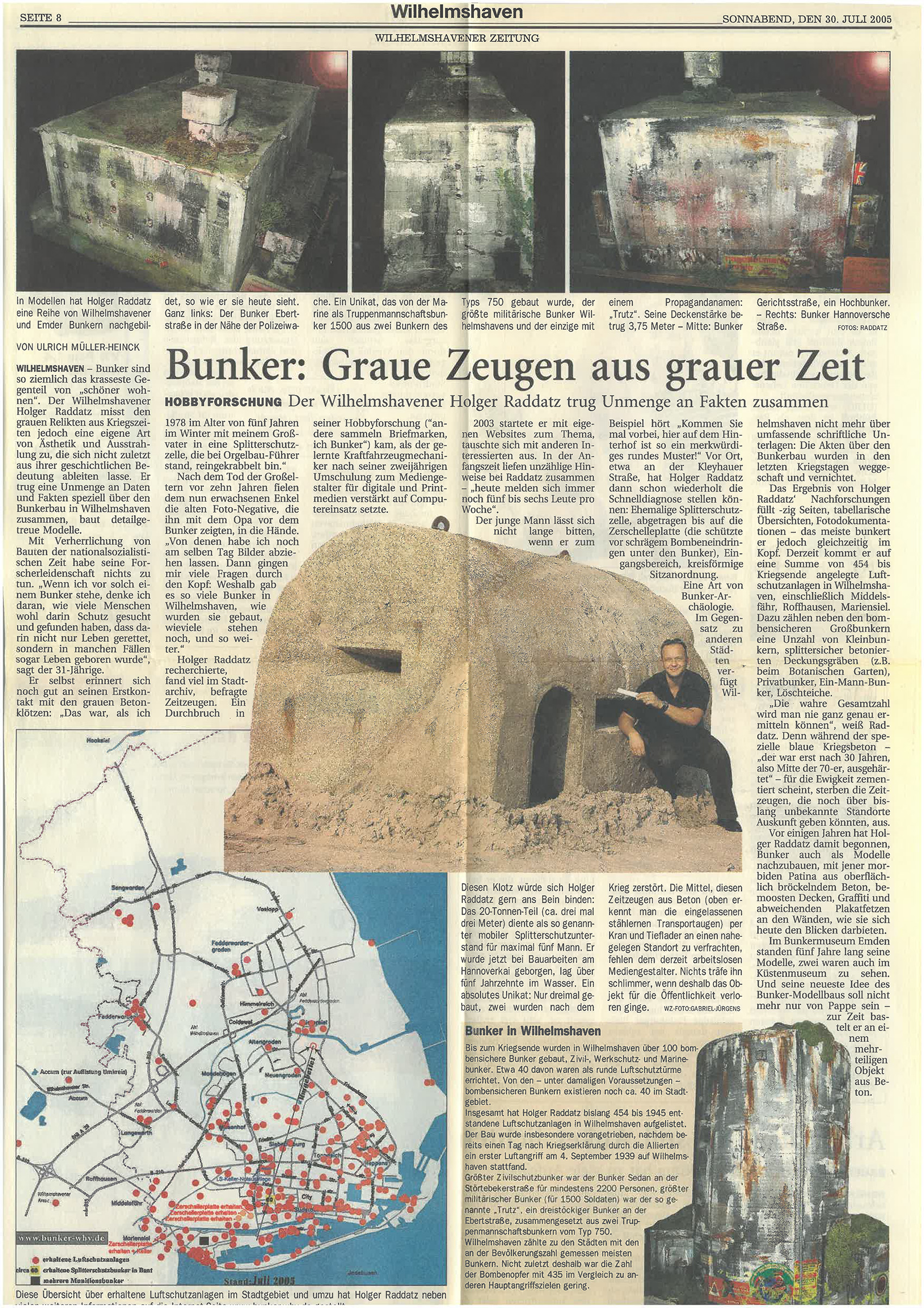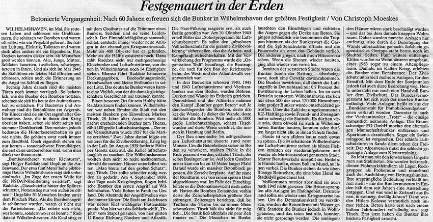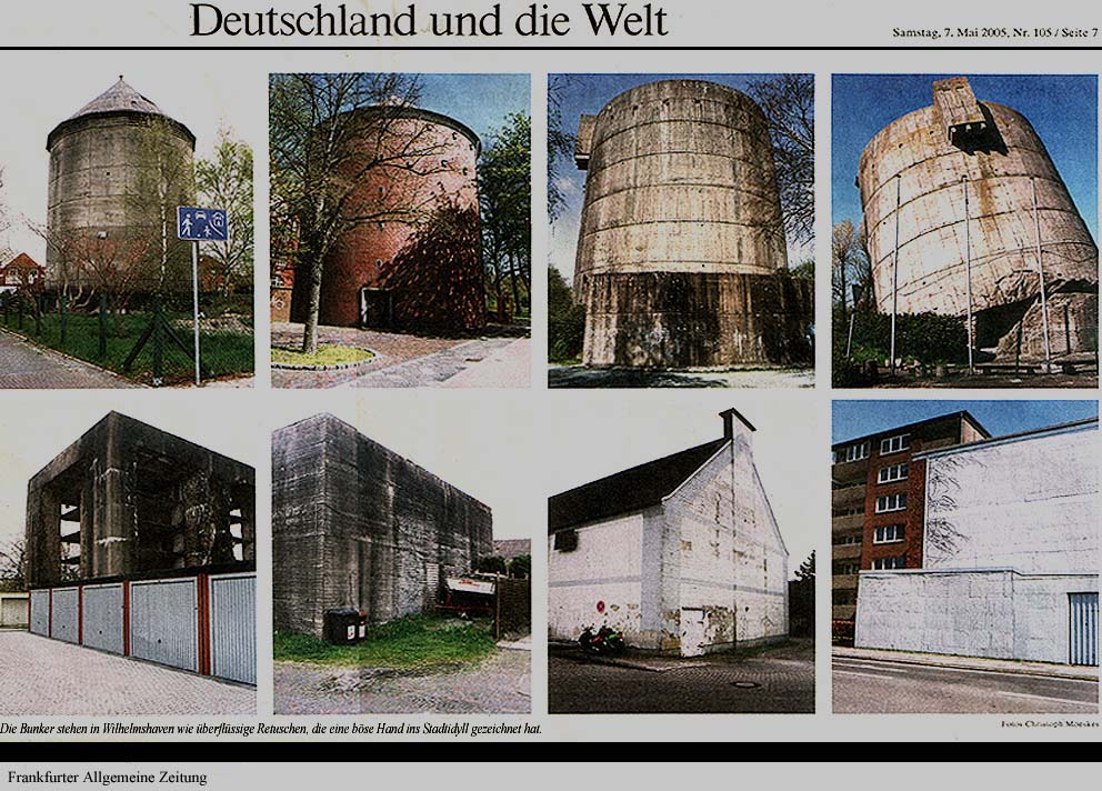 Presseberichte Bunker Wilhelmshaven Wir danken insbesondere der Wilhelmshavener Zeitung für die wohlwollende Berichterstattung bezüglich der Bunkerthematik. FAZ 07.05.05: