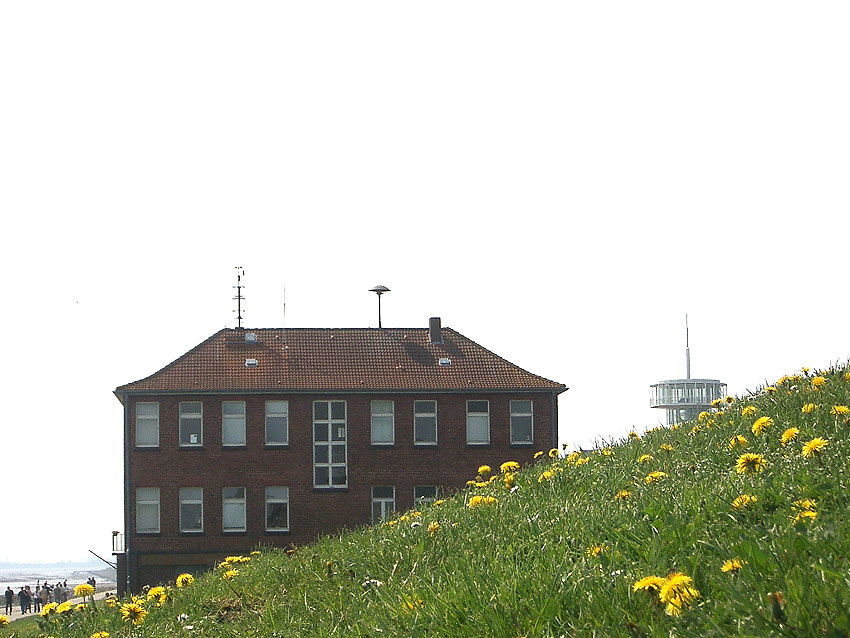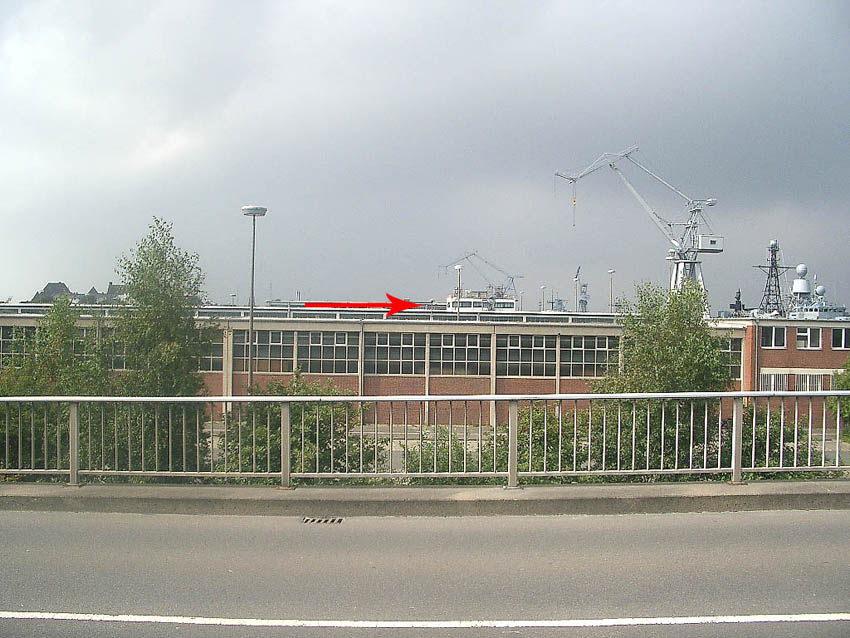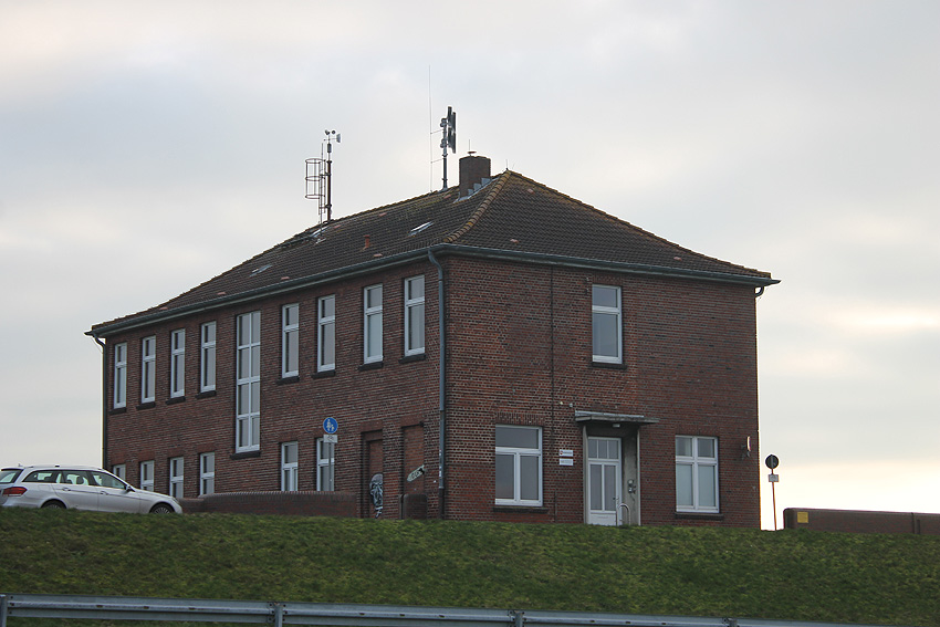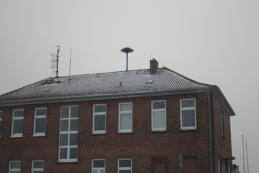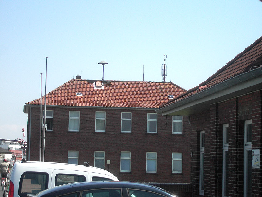 5. Nachkriegs-Sirene (Einheitssirene E57) auf dem Dach eines Gebäudes des ehemaligen Seefliegerhorstes am Fliegerdeich (später Wasserwirtschaftsamtstelle) / eventuell Originalstandort von Ursprungssirene Entfernt