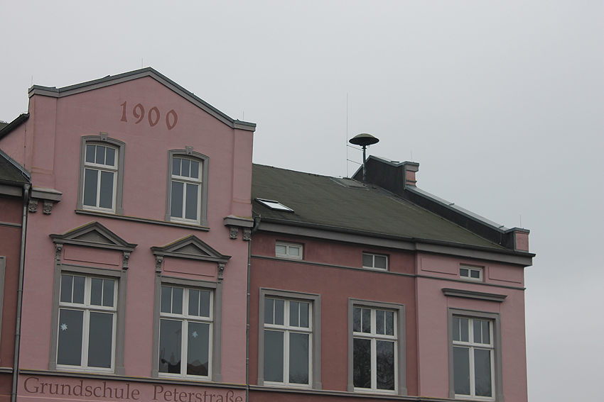 9. Nachkriegs-Sirene (Einheitssirene E57) auf dem Dach der ehemaligen Schule Peterstraße / eventuell Originalstandort von Ursprungssirene Entfernt