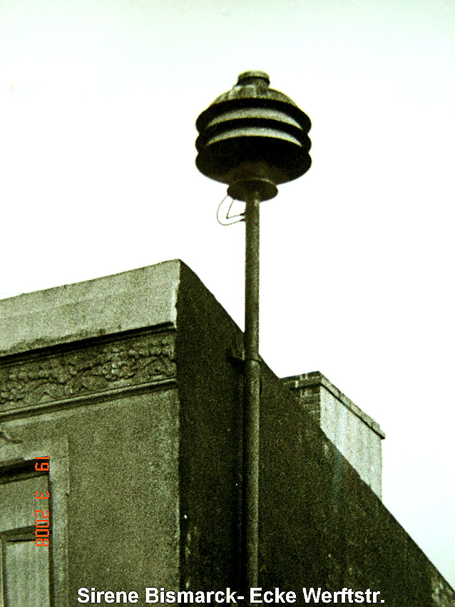 24. Nachkriegs-Sirene (Einheitssirene E57) auf dem Dach der Marinegebäude Mozartstraße / Bremer Straße / eventuell Originalstandort von Ursprungssirene / wohl 1970er Jahre Entfernt