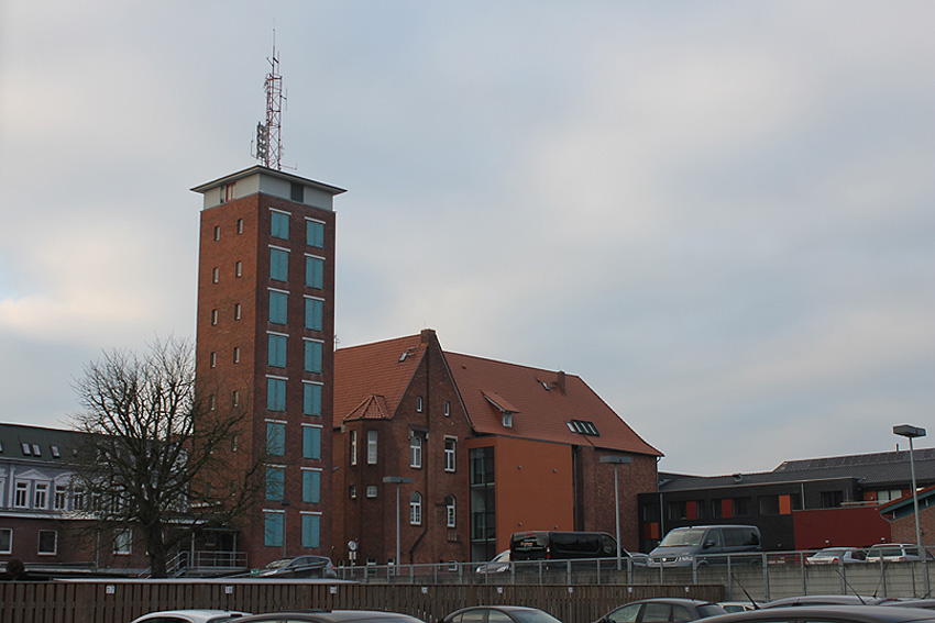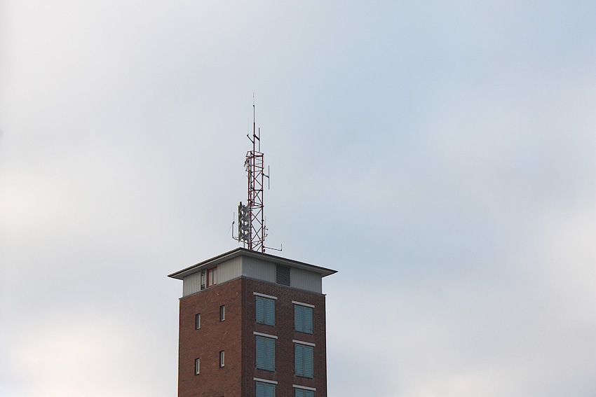 10. Nachkriegs-Sirene (Einheitssirene E57) auf dem Schlauchturm der städtischen Berufsfeuerwehr an der Mozartstraße in der Innenstadt / hier befindet sich allerdings nicht die Katastrophenschutzleitung und damit Koordinationsstelle des Sirenensystemes - diese ist an der Güterstraße ansässig / hier neu montiert Entfernt