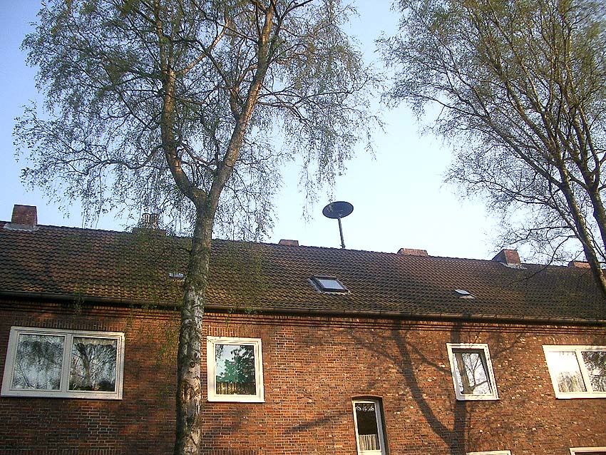 84. Kein Foto: Nachkriegs-Sirene (Einheitssirene E57) auf dem Dach eines Mehrparteienwohnhauses an der Ubbostraße / Altengroden / eventuell Originalstandort von Ursprungssirene / wohl 1980er Jahre Entfernt