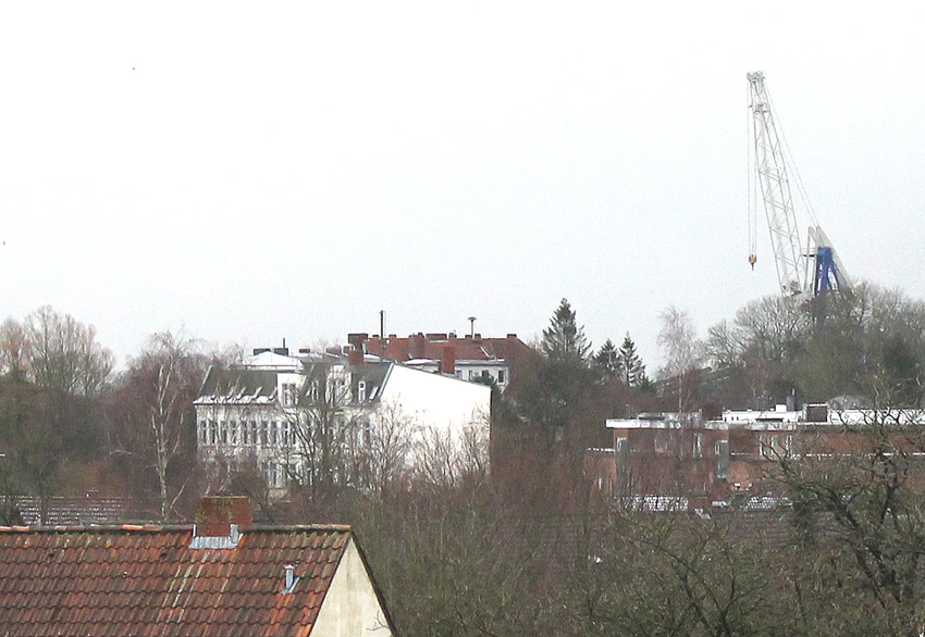 109. Kein Foto: Sirene aus dem WK 2 (Zweifachsirene) auf dem Dach eines Wachgebäudes im Marine-Artilleriedepot (Munitionsdepot) / Bereich an der heutigen Planckstraße / Pförtnergebäude des späteren Nordwestdeutschen Fahrzeugbaues (NWF) / Originalstandort / wohl 1960er Jahre Entfernt