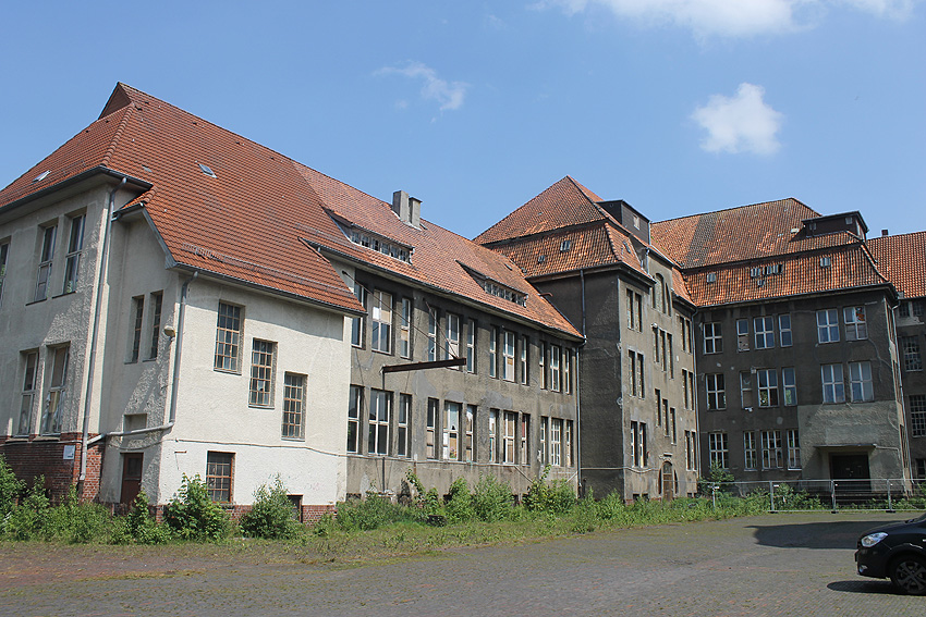 38. Kein Foto: Nachkriegs-Sirene (Einheitssirene E57) auf dem Dach der Grundschule Coldewei (Schule Himmelreich) / Klinkerstraße / eventuell Originalstandort von Ursprungssirene / 2003 zusammen mit Schulgebäude Entfernt