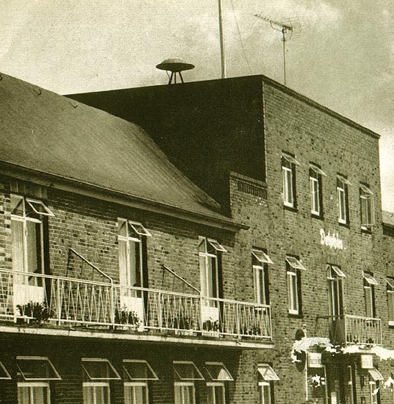 100. Kein Foto: Sirene aus dem WK 2 (Vorläufer Einheitssirene E57) auf dem Dach des Dorfkruges Inhausersiel / Originalstandort / 1970er Jahre zusammen mit dem gesamten Dorf Inhausersiel Entfernt