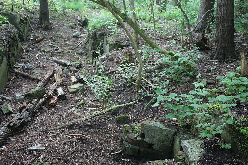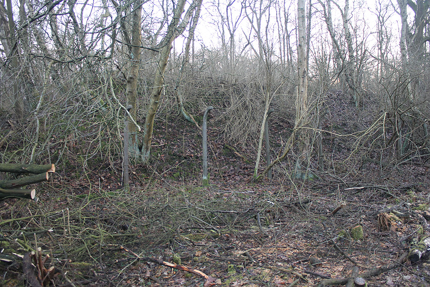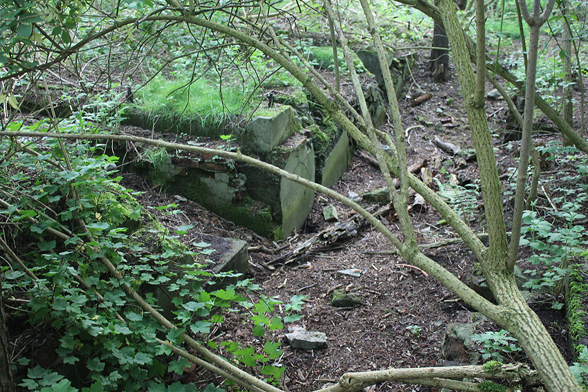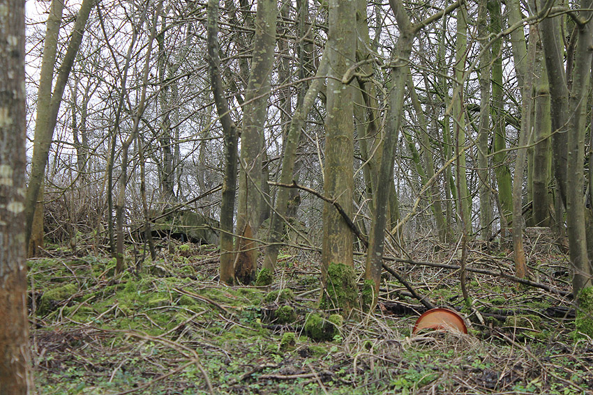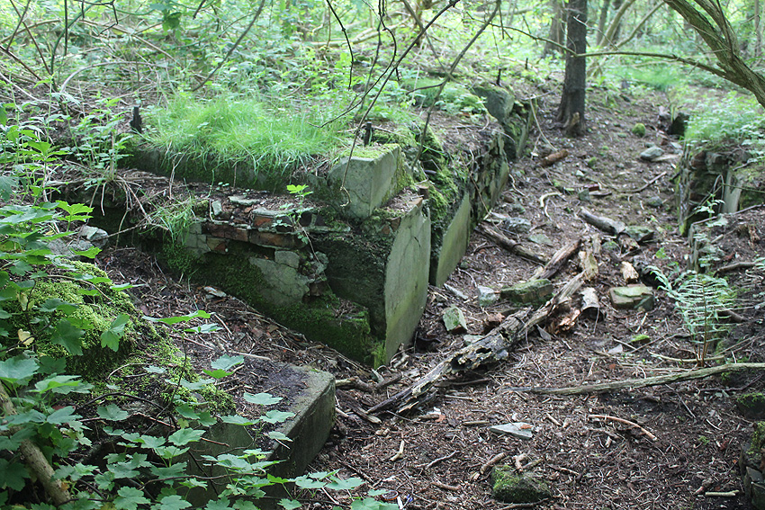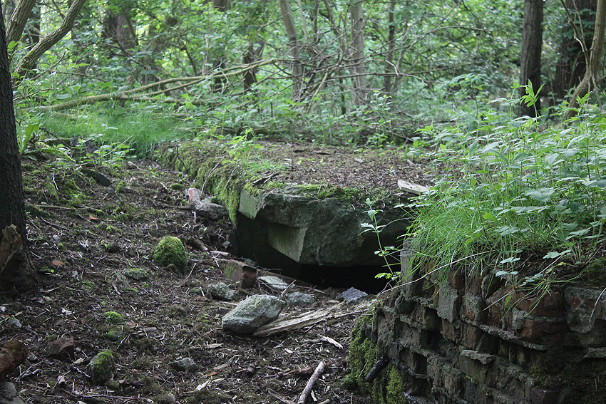 Südlich der Planckstraße, wiederum direkt südlich des dortigen historischen Bahnschienenstranges befindet sich eine rechteckige Wallanlage. Darin in dieser Deckungsumwallung befand sich im Krieg nach Hinweisen eine Büchsenmacherei des damaligen Materialdepots (Bereich hier: Torpedoniederlage) vom Marine-Munitionsdepot (Artilleriedepot). Das Gebäude ist nicht mehr existent. Die Kuhle ist voll Wasser gelaufen. Westlich daneben ist allerdings ein Teich vorhanden, der schon im Krieg existierte. War dies ein Feuerlöschteich (was Sinn machen würde)? Interessant sind auch die diversen ehemaligen Zaunpfähle und Torpfähle in dem Gebiet.