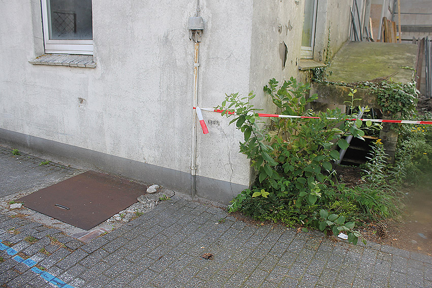 An der Rückwand des Eckgebäudes Rheinstraße 11 / Ahrstraße befindet sich ein runder Schacht. War dies eventuell ein LS-Keller-Luftschacht? Die Höhe, in welcher der Schacht liegt, spricht allerdings eher dagegen.