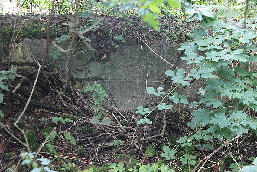 Auf dem Gelände der ehemaligen Kriegsmarine-Feuerwache (nach dem Krieg lange Zeit Firmensitz "Orgelbau Führer") an der heutigen Emsstraße 64 befindet sich südlich im Garten ein Objekt. Dieses ist circa 4 Meter lang, etwa 3 Meter breit und besitzt eine massive Stahlbetondecke, genau wie die beiden bereits bekannten LS-Kellereingänge ein paar Meter östlich. Das Mauerwerk ist dreilagig und daher ebenfalls massiv. Irgendwann wird der Innenraum bis auf (heutiges?) Erdgleichen-Außenniveau verfüllt worden sein. Eine Tür ist nicht zu sehen. Der Zugang dürfte sich als Luke oder ähnliches unter der heutigen Verfüllungslinie befunden haben. Eventuell waren zusätzlich Stahlträger unter der Decke vorhanden (Aussparungen an den Wandbereichen innen zur Deckenkante hin). Falls es sie gab, dürften sie nach 1945 von Schrottverwertern herausgesägt worden sein. Für die Teilverfüllung werden zwei heute ersichtliche Löcher in das Mauerwerk gestoßen worden sein. Nördlich wurde später ein Geräteschuppen angesetzt. Was war dies für ein Objekt? Eventuell ein sehr früher Behelfsluftschutzbau mit Fertigung um 1939? Vielen Dank an Herrn Buhland für die Informationen und die interessante Führung. Im Garten befindet sich zudem diese Betonplatte...