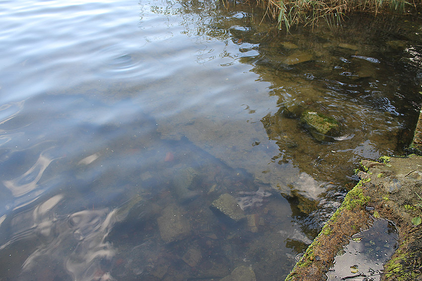 Und auch einige Meter westlich, direkt am Südwestende des heutigen Banter Sees liegen Trümmer unter Wasser: