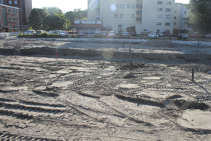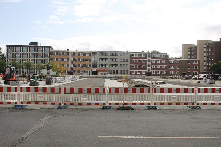 Ab Sommer 2017 wurden die Busspuren vom Bismarckplatz umgestaltet. Hier traten teilweise massive alte Trümmer ans Tageslicht. Was war das? Im September 2017 sah das Gelände mittlerweile so aus: